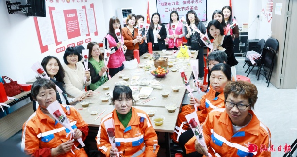 晨光熹微,文津社區(qū)的街巷,炒米的焦香已經(jīng)飄出老遠(yuǎn)。幾位穿著橙色馬甲的環(huán)衛(wèi)女工放下掃帚,搓了搓手,被社區(qū)干部熱情地迎進(jìn)門(mén);蓮花村黨群服務(wù)中心的玻璃窗上,晨露還未散去,活動(dòng)室里已經(jīng)擺滿了各色鮮花;南門(mén)社區(qū)傳來(lái)輕快的音樂(lè),一群阿姨對(duì)著鏡子練習(xí)手勢(shì)舞,笑靨如花……三月的海豐縣海城鎮(zhèn),在晨曦中迎來(lái)了第116個(gè)“三八”國(guó)際勞動(dòng)?jì)D女節(jié)。
