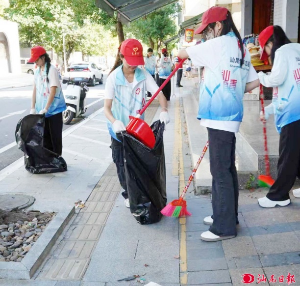 青年志愿者在十五運(yùn)會(huì)期間開展清掃街道活動(dòng)。