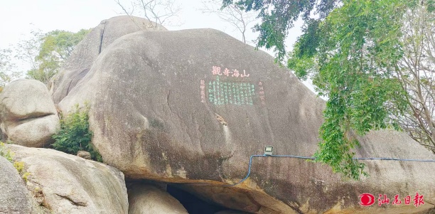 明末清初,邑庠生廖天佐在石厝崆隱居,自稱“一窯洞居士”,并將石洞命名為“黎明洞”。后來南明總兵劉鍔不愿降清,亦到此與廖天佐一同隱居。清同治版《海豐縣志古跡》載:“有石如蓋,內(nèi)可容二十人,外有巖扉,不假人事,為前明廖天佐隱所?!苯輨僖恍校杳鞫词潜氐街?,我們來到石崗村。沿著黎明小學(xué)右側(cè)的一條蜿蜒曲折的青石小路引領(lǐng)著我們向前行。路旁奇石佇立、綠樹成蔭,郁郁蔥蔥的枝葉交織在一起,形成了一片天然的綠色穹頂。抬頭藍(lán)天如洗,低頭白云悠然,有種天地合一之感,陽光透過枝葉的縫隙灑下,形成斑駁的光影,如夢如幻,宛如一幅自然的畫卷。沿著小路前行 不一會兒便來到黎明洞西北門。