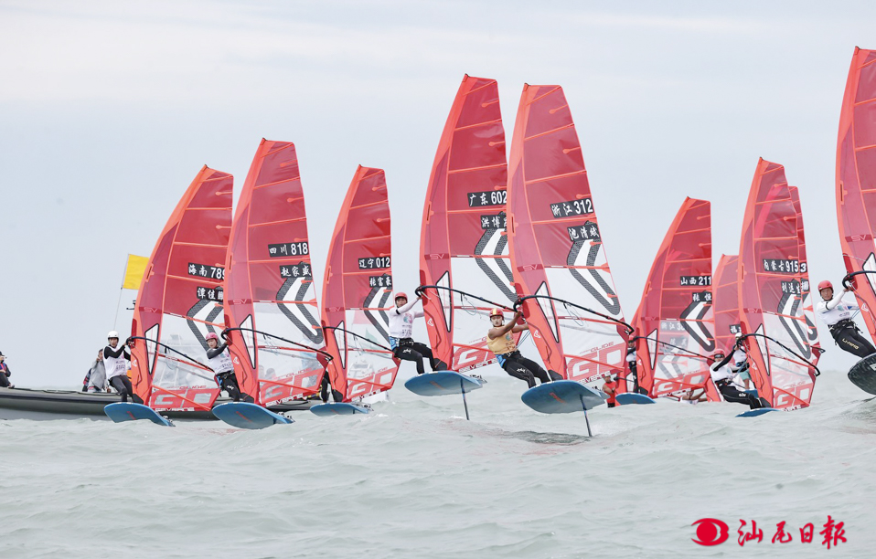 賽場上,各參賽隊伍乘風破浪,展開多輪扣人心弦的激烈比拼。在三個分設(shè)的比賽區(qū)域內(nèi),各級別帆船依性能特點分組角逐——L6、L7與470級等項目穩(wěn)控節(jié)奏、從容破浪;風箏板、水翼板等高速項目破浪如飛,疾馳向前;而諾卡拉17與49人級雙體船則憑借靈活的船體,在浪濤間穿梭自如。運動員們迎著涌浪,不斷調(diào)整風帆角度,壓舷、轉(zhuǎn)向、沖刺……每一個動作背后,都凝結(jié)著平日訓練的汗水與戰(zhàn)術(shù)的智慧。
