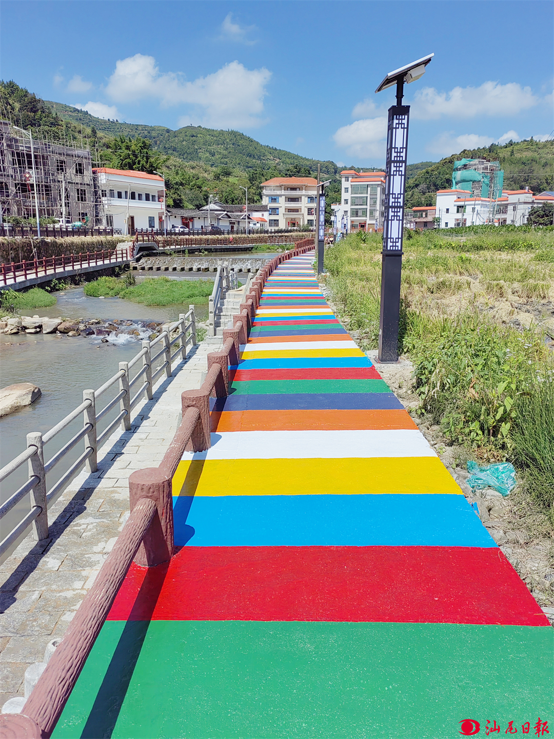 萬東村溪邊的“五彩”人行道五彩斑斕。